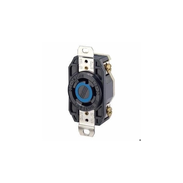 Flanged Locking Receptacle, L15-30R, 30 A, 250V AC, Three Phase, 3 Pole, Flush Mount, Black