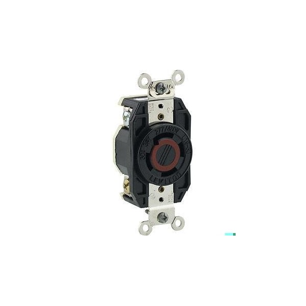 Flanged Locking Receptacle, L19-30R, 30 A, 277/480V AC, Three Phase, 4 Pole, Flush Mount, Black