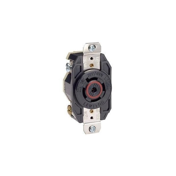 Flanged Locking Receptacle, L22-20R, 20 A, 277/480V AC, Three Phase, 4 Pole, Flush Mount, Black