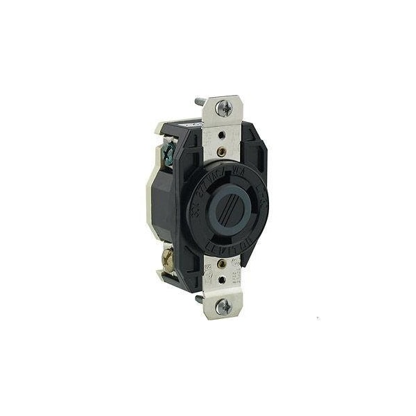 Flanged Locking Receptacle, L7-30R, 30 A, 277V AC, Single Phase, 2 Pole, Flush Mount, Black
