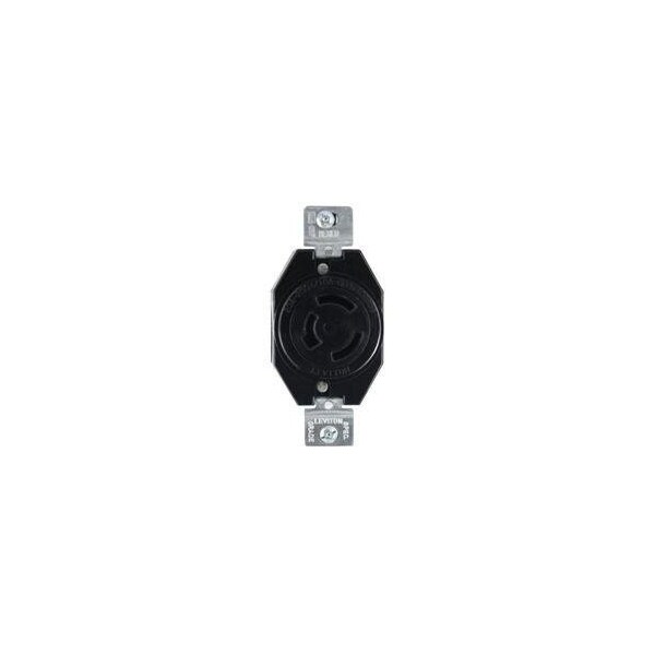 Flanged Locking Receptacle, Non-NEMA, 20 A, 125/250V AC, Single Phase, 3 Pole, Flush Mount, Black