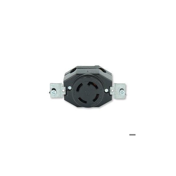 Flanged Locking Receptacle, Non-NEMA, 30 A, 120/208V AC, Three Phase, 4 Pole, Flush Mount, Black
