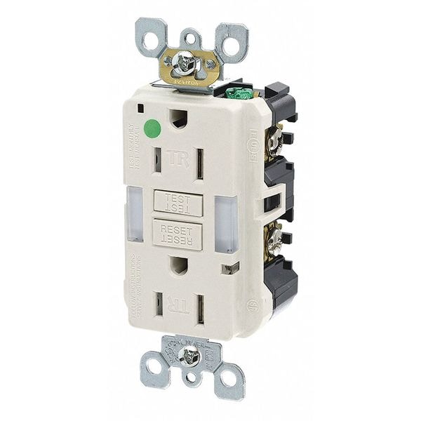 GFCI Receptacle, 15A, 125VAC, 5-15R, Almond