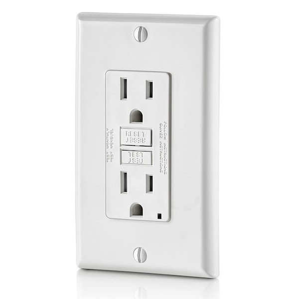 GFCI Receptacle, 15A, 125Vac, 5-15R, White