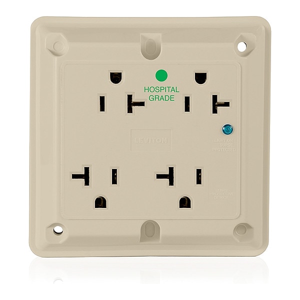 Quadruplex Receptacle, Connection Orientation Straight, Cover Type No Cover, Current Rating 20 A, GFCI No, Grounding Grounded, Hazardous Location Specification Not Applicable, Housing Color Ivory, Housing Material Nylon, Mount Type Flush, NEMA Enclosure Rating 5, NEMA Receptacle Configuration 5-20R, Number of Gangs 2, Number of Poles 2, Number of Wires 3, Phase Single, Polarized Yes, Receptacle Type Quad, Resistance Properties Chemical Resistant