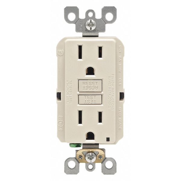 GFI Receptacle, Cover Type No Cover, Current Rating 15 A, GFCI Yes, Grounding Grounded, Housing Color Light Almond, Housing Material Polycarbonate, Mount Type Flush, NEMA Receptacle Configuration 5-15R, Number of Poles 2, Number of Wires 3, Phase Single, Polarized Yes, Receptacle Type Decorator Duplex, Standards CSA C22.2 - 144.1 (GFCI) and 42 (Receptacles), CSA Certified, CSA Certified LR-57811, NOM Certified, UL 943 Class A (GFCI) and 498 (Receptacles), UL Listed, UL Listed E48380