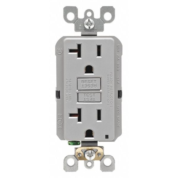 GFI Receptacle, Cover Type No Cover, Current Rating 20 A, GFCI Yes, Grounding Grounded, Housing Color Gray, Housing Material Polycarbonate, Mount Type Flush, NEMA Receptacle Configuration 5-20R, Number of Poles 2, Number of Wires 3, Phase Single, Polarized Yes, Receptacle Type Decorator Duplex, Standards CSA C22.2 - 144.1 (GFCI) and 42 (Receptacles), CSA Certified, CSA Certified LR-57811, NOM Certified, UL 943 Class A (GFCI) and 498 (Receptacles), UL Listed, UL Listed E48380