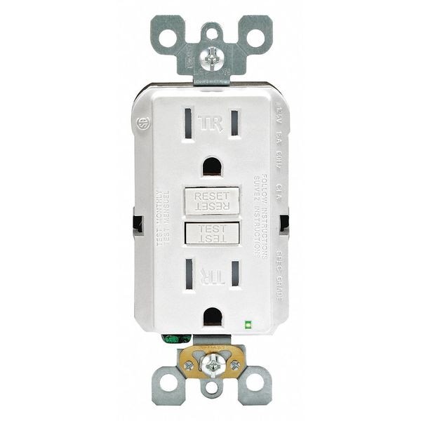 GFI Receptacle, Connection Orientation Straight, Cover Type No Cover, Current Rating 15 A, GFCI Yes, Grounding Grounded, Housing Color White, Housing Material Polycarbonate, Mount Type Flush, NEMA Receptacle Configuration 5-15R, Number of Poles 2, Number of Wires 3, Phase Single, Polarized Yes, Receptacle Type Decorator Duplex, Resistance Properties Tamper Resistant, Standards ANSI, CSA Certified, Federal Specification, MIL-SPEC, NOM Certified, RoHS Compliant, UL Listed, Voltage Rating 125V AC