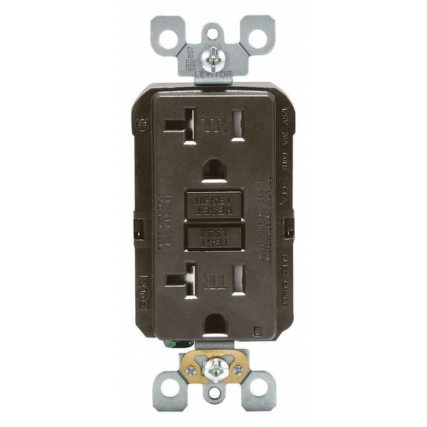 GFI Receptacle, Connection Orientation Straight, Cover Type No Cover, Current Rating 20 A, GFCI Yes, Grounding Grounded, Housing Color Brown, Housing Material Polycarbonate, Mount Type Flush, NEMA Receptacle Configuration 5-20R, Number of Poles 2, Number of Wires 3, Phase Single, Polarized Yes, Receptacle Type Decorator Duplex, Resistance Properties Tamper Resistant, Standards ANSI, CSA Certified, Federal Specification, MIL-SPEC, NOM Certified, RoHS Compliant, UL Listed, Voltage Rating 125V AC