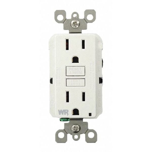 GFI Receptacle, Connection Orientation Straight, Cover Type No Cover, Current Rating 15 A, GFCI Yes, Grounding Grounded, Housing Color White, Housing Material Polycarbonate, Mount Type Flush, NEMA Enclosure Rating Not Rated, NEMA Receptacle Configuration 5-15R, Number of Poles 2, Number of Wires 3, Phase Single, Polarized No, Receptacle Type Decorator Duplex, Resistance Properties Impact Resistant, Weather Resistant