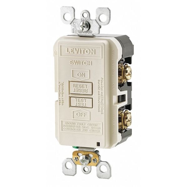 GFI Receptacle, Current Rating 20 A, Housing Color Light Almond, Housing Material Polycarbonate, Mount Type Flush, Number of Poles 2, Number of Wires 3, Voltage Rating 125V AC, Wire Connection Type Screw Terminals, Wiring Method Back, Side, Horsepower Rating 1 hp, Includes Mounting Hardware Yes, Market Commercial, Self Testing Yes