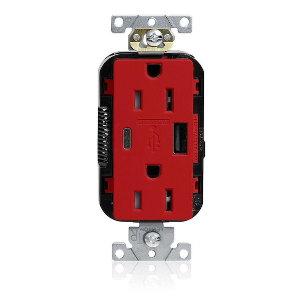 Lev-Lok TR Dup USB A-C 15A 125V Red