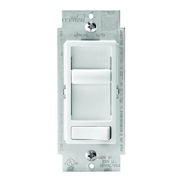 Leviton Decora SureSlide dimmers provide smooth, slide action, full range dimming for incandescent and dimmable LED and CFL lamps. Featuring a pre-set on/off switch, this device allows the user to set the desired brightness level to operate automatically with the on/off function. The dimmer is designed specifically for dimmable light-emitting diodes (LED) and dimmable compact fluorescent (CFL) lamps, it is also compatible for use with incandescent lamps.