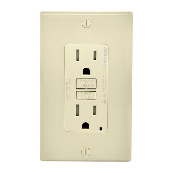 The SmartlockPro Dual Function AFCI/GFCI Receptacle offers protection both from electrical fires that could result from arc-faults and from electrical shock due to ground faults in one smart device. Through advanced technology the SmartlockPro Dual Function AFCI/GFCI Receptacle helps protect home and family by working to detect arc-fault and ground fault hazards and if detected, quickly cuts off power to help avoid a potential fire or shock occurrence. The SmartlockPro Dual Function AFCI/GFCI Receptacle offers a National Electrical Code (NEC) compliant option for AFCI/GFCI protection in residential kitchens and laundry areas for new construction, modifications/extensions and replacement receptacles. It is also ideal as a replacement for ungrounded receptacles, satisfying NEC requirements for both AFCI and GFCI protection.