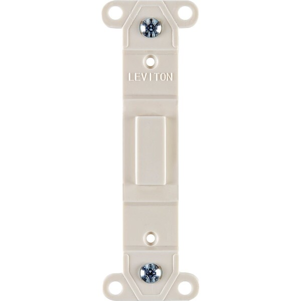 Wall plate insert adapter. Blank plastic toggle with no hole. Mounting screws included. Compatible with Leviton wall plates.
