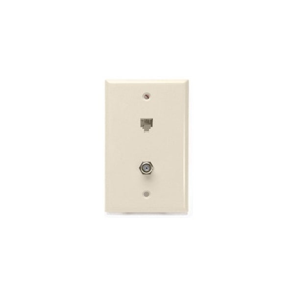 Light Almond, High Impact Plastic, 1 6-Position 4-Conductor RJ11 Jack, 1 F-Connector, Flush Mount