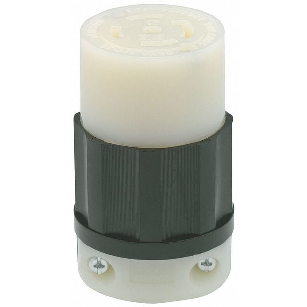 Locking Connector, Connection Orientation Straight, Current Rating 30 A, Housing Color Black, White, Housing Material Nylon, IP Rating Not Rated, NEMA Receptacle Configuration L21-30R, Number of Poles 4, Number of Wires 5, Phase Three, Polarized Yes, Resistance Properties Chemical Resistant, Impact Resistant, UV/Sunlight Resistant, Shrouded No, Voltage Rating 120/208V AC, Wire Connection Type Screw Terminals, Wiring Style Standard, Cap Type No Cap or Cover, Contact Material Brass