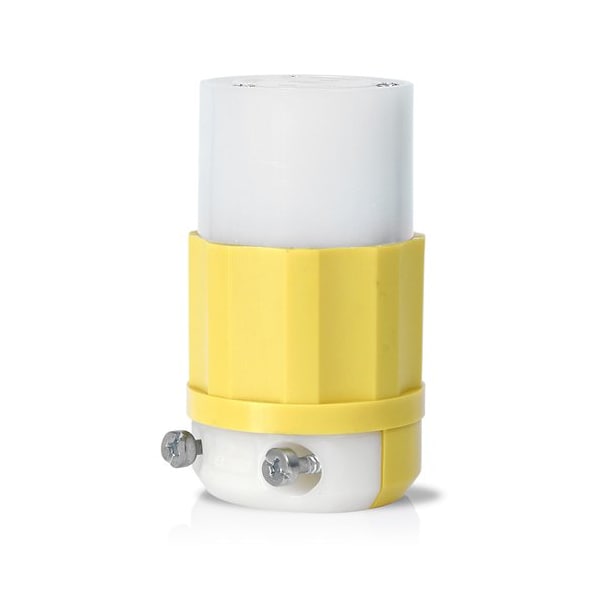 Locking Connector, L5-30R, 30 A, 125V AC, 2 Pole, Screw Terminals, White, Yellow