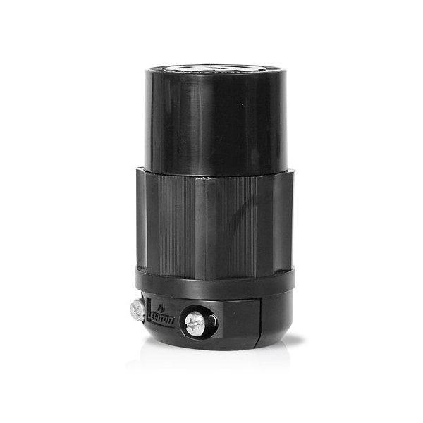 Locking Connector, Connection Orientation Straight, Current Rating 20 A, Housing Color Black, Housing Material Nylon, IP Rating Not Rated, NEMA Receptacle Configuration L6-20R, Number of Poles 2, Number of Wires 3, Phase Single, Polarized Yes, Resistance Properties Chemical Resistant, Impact Resistant, UV/Sunlight Resistant, Shrouded No, Voltage Rating 250V AC, Wire Connection Type Screw Terminals, Wiring Style Standard, Cap Type No Cap or Cover, Contact Material Brass, Face Diameter 1.84 in