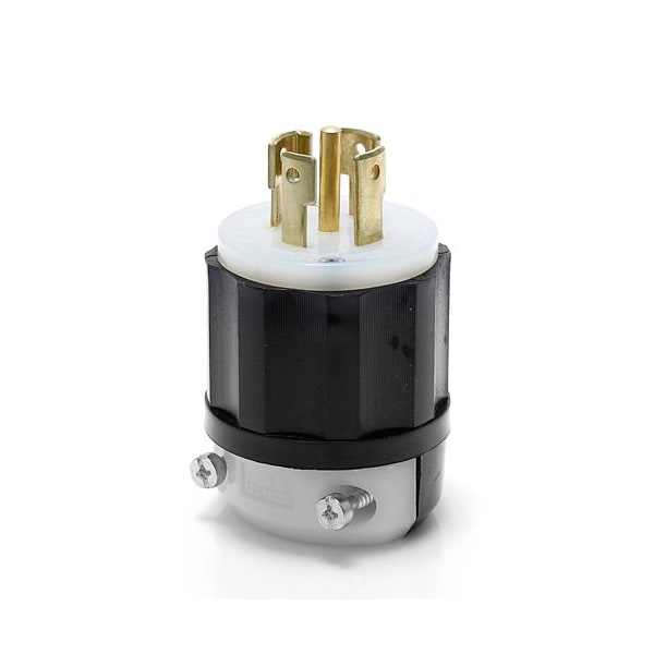 Locking Plug, L22-30P, 30 A, 277/480V, Three Phase, 4 Pole, Screw Terminals, Black, White