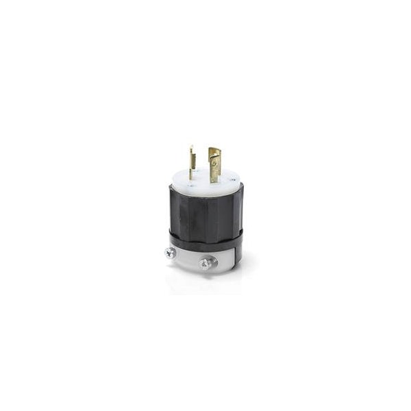 Locking Plug, Connection Orientation Straight, Current Rating 20 A, Housing Color Black, White, Housing Material Nylon, NEMA Plug Configuration L5-20P, Number of Blades 3, Number of Poles 2, Phase Single, Polarized Yes, Resistance Properties Chemical Resistant, Impact Resistant, UV/Sunlight Resistant, Voltage Rating 125V AC, Wire Connection Type Screw Terminals, Wiring Style Standard, Face Diameter 1.84 in, For Maximum Cable Diameter 0.72 in, For Minimum Cable Diameter 0.385 in