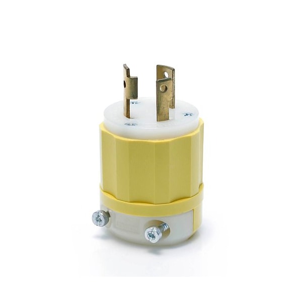 Locking Plug, L5-30P, 30 A, 125V AC, 2 Pole, Screw Terminals, White, Yellow