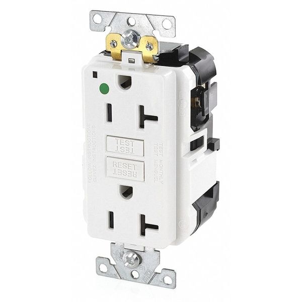 Modular Receptacle, Connection Orientation Straight, Cover Type No Cover, Current Rating 20 A, GFCI Yes, Grounding Grounded, Hazardous Location Specification Not Applicable, Housing Color White, Housing Material Polycarbonate, Mount Type Flush, NEMA Enclosure Rating Not Rated, NEMA Receptacle Configuration 5-20R, Number of Poles 2, Number of Wires 3, Phase Single, Polarized Yes, Receptacle Type Decorator Duplex, Resistance Properties Not Applicable