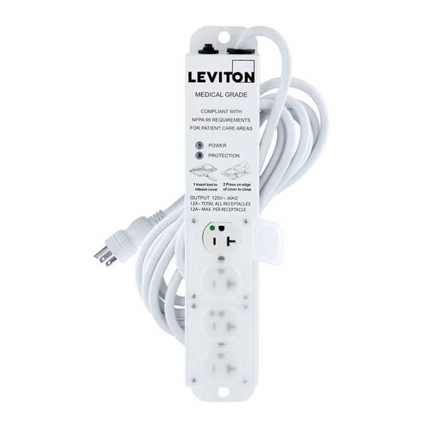 Surge Protected Outlet Strip, Total Number of Outlets 4, Cord Length 15 ft, Rated Joules 644, Application Hospital and Medical Facility, Housing Material Steel, Max. Amps 20 A, Power Indicator Yes, Receptacle Configuration Hospital Grade, Plug Configuration NEMA 5-20P, Medical Facility Use Outside Patient Care Areas (UL 1449); Patient Care - Only When Permanently Mounted (UL 1363A); Patient Care (UL 60601-1), Voltage 125V AC, Length 13 3/4 in