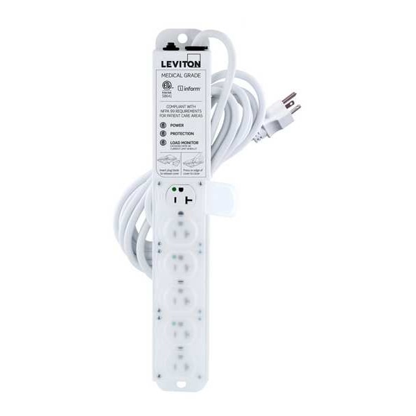 Outlet Strip, Application Hospital and Medical Facility, Housing Material Steel, Total Number of Outlets 6, Max. Amps 20 A, Cord Length 15 ft, Number of Power Switches 0, Power Indicator Yes, Number of Outlet Rows 6, Receptacle Configuration Hospital Grade, Plug Configuration NEMA 5-20P, Wire Size 12 AWG, Mounting Style Screw, Color White, Medical Facility Use Outside Patient Care Areas (UL 1449); Patient Care - Only When Permanently Mounted (UL 1363A); Patient Care (UL 60601-1)