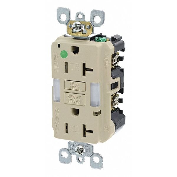 Recept, Ivory, 20 A, GFCI, 2P3W, Bk;Sd, 1PK