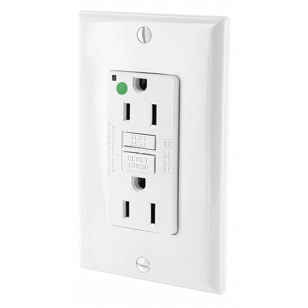 GFI Receptacle, Connection Orientation Straight, Cover Type No Cover, Current Rating 15 A, GFCI Yes, Grounding Grounded, Hazardous Location Specification Not Applicable, Housing Color White, Housing Material Polycarbonate, Mount Type Flush, NEMA Enclosure Rating Not Rated, NEMA Receptacle Configuration 5-15R, Number of Poles 2, Number of Wires 3, Phase Single, Polarized Yes, Receptacle Type Decorator Duplex, Resistance Properties Not Applicable
