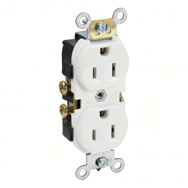 Receptacle, Connection Orientation Straight, Cover Type No Cover, Current Rating 15 A, GFCI No, Grounding Grounded, Hazardous Location Specification Not Applicable, Housing Color White, Housing Material Nylon, Mount Type Flush, NEMA Enclosure Rating Not Rated, NEMA Receptacle Configuration 5-15R, Number of Poles 2, Number of Wires 3, Phase Single, Polarized Yes, Receptacle Type Duplex, Resistance Properties Not Applicable