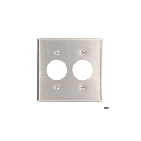 Receptacle Wall Plate, Number of Gangs: 2 Stainless Steel, Silver
