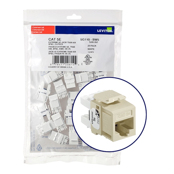 GigaMax 5e+ QuickPort Connector Quickpack, CAT 5e, 25-pack, ivory