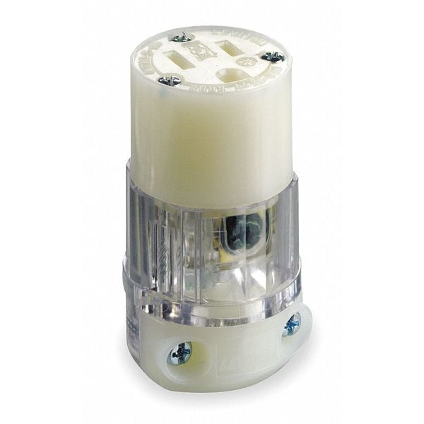 Straight Blade Connector, 5-15R, 15 A, 125V AC, 2 Pole, 3 Wire, Screw Terminals, Clear, White