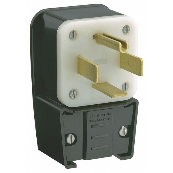 Angle Straight Blade Plug, Connection Orientation Angled, Current Rating 60 A, Grounding Grounded, Horsepower Rating 3 1/2 hp, Housing Color Black, IP Rating Not Rated, NEMA Plug Configuration 14-60P, Number of Blades 4, Number of Poles 3, Phase Single, Polarized Yes, Resistance Properties Shatter and Crack Resistant, Chemical Resistant, Moisture Resistant, UL 94 Flammability Rating V-2, Voltage Rating 125/250V AC, Wire Connection Type Screw Terminals, Wiring Style Standard
