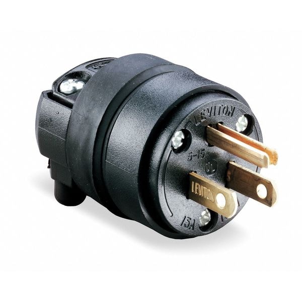 Straight Blade Plug, Connection Orientation Straight, Current Rating 15 A, Grounding Grounded, Horsepower Rating 1/2 hp, Housing Color Black, IP Rating Not Rated, NEMA Plug Configuration 5-15P, Number of Blades 3, Number of Poles 2, Phase Single, Polarized No, UL 94 Flammability Rating V-2, Voltage Rating 125V AC, Wire Connection Type Screw Terminals, Wiring Style Standard, For Maximum Cable Diameter 0.7 in, For Minimum Cable Diameter 0.245 in, Grade General, Housing Material EPTR Rubber