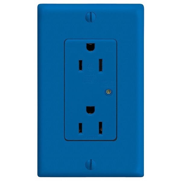 Receptacle, Connection Orientation Straight, Cover Type No Cover, Current Rating 15 A, GFCI No, Grounding Grounded, Hazardous Location Specification Not Applicable, Housing Color Blue, Housing Material Thermoplastic, Mount Type Flush, NEMA Enclosure Rating Not Rated, NEMA Receptacle Configuration 5-15R, Number of Poles 2, Number of Wires 3, Phase Single, Polarized Yes, Receptacle Type Decorator Duplex, Resistance Properties Not Applicable