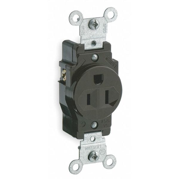 Receptacle, Connection Orientation Straight, Cover Type No Cover, Current Rating 15 A, GFCI No, Grounding Grounded, Hazardous Location Specification Not Applicable, Housing Color Brown, Housing Material Nylon, Mount Type Flush, NEMA Enclosure Rating Not Rated, NEMA Receptacle Configuration 5-15R, Number of Poles 2, Number of Wires 3, Phase Single, Polarized Yes, Receptacle Type Single, Resistance Properties Not Applicable