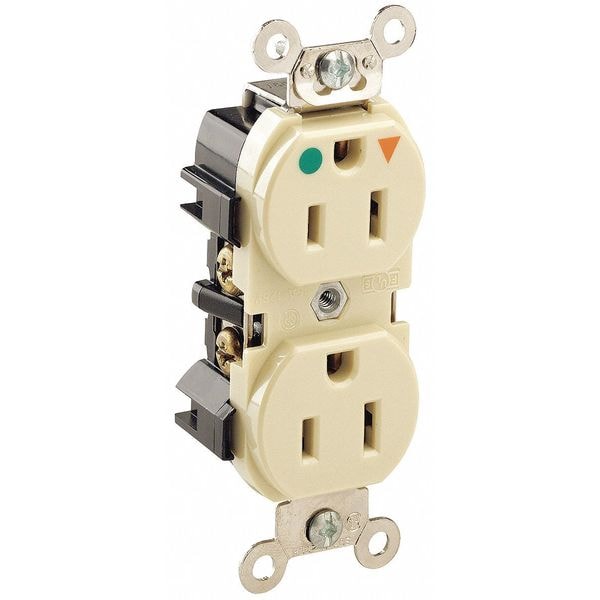 Receptacle, Connection Orientation Straight, Cover Type No Cover, Current Rating 15 A, GFCI No, Grounding Isolated Ground, Hazardous Location Specification Not Applicable, Housing Color Ivory, Housing Material PBT Thermoplastic Polyester, Mount Type Flush, NEMA Enclosure Rating Not Rated, NEMA Receptacle Configuration 5-15R, Number of Poles 2, Number of Wires 3, Phase Single, Polarized Yes, Receptacle Type Duplex, Resistance Properties Not Applicable