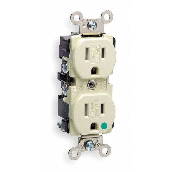 Receptacle, Connection Orientation Straight, Cover Type No Cover, Current Rating 15 A, GFCI No, Grounding Grounded, Hazardous Location Specification Not Applicable, Housing Color Ivory, Housing Material Nylon, Mount Type Flush, NEMA Enclosure Rating Not Rated, NEMA Receptacle Configuration 5-15R, Number of Gangs 1, Number of Poles 2, Number of Wires 3, Phase Single, Polarized Yes, Receptacle Type Duplex, Resistance Properties Tamper Resistant