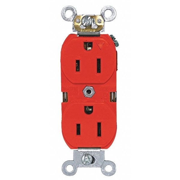 Receptacle, Connection Orientation Straight, Cover Type No Cover, Current Rating 15 A, GFCI No, Grounding Isolated Ground, Hazardous Location Specification Not Applicable, Housing Color Red, Housing Material Nylon, Mount Type Flush, NEMA Enclosure Rating Not Rated, NEMA Receptacle Configuration 5-15R, Number of Poles 2, Number of Wires 3, Phase Single, Polarized Yes, Receptacle Type Duplex, Resistance Properties Not Applicable