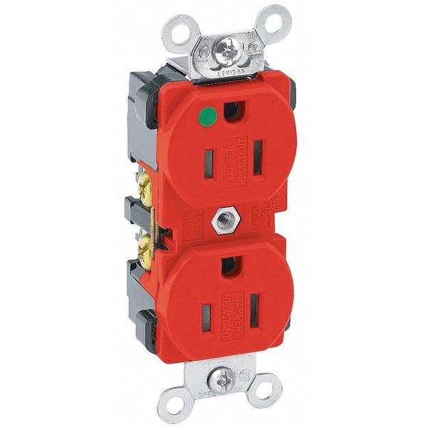 Receptacle, Connection Orientation Straight, Cover Type No Cover, Current Rating 15 A, GFCI No, Grounding Grounded, Hazardous Location Specification Not Applicable, Housing Color Red, Housing Material Nylon, Mount Type Flush, NEMA Enclosure Rating Not Rated, NEMA Receptacle Configuration 5-15R, Number of Poles 2, Number of Wires 3, Phase Single, Polarized Yes, Receptacle Type Duplex, Resistance Properties Tamper Resistant