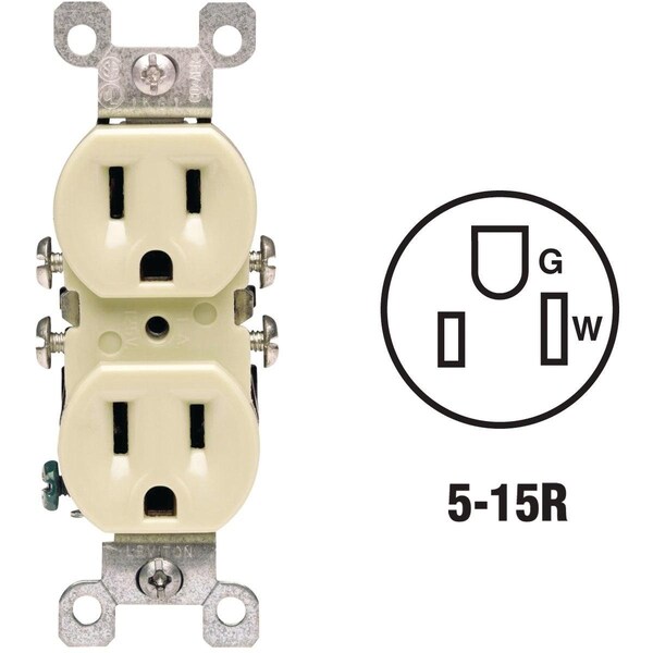 Straight Blade Receptacle, 5-15R, 15 A, 125V AC, 2 Pole, 3 Wire, Grounded