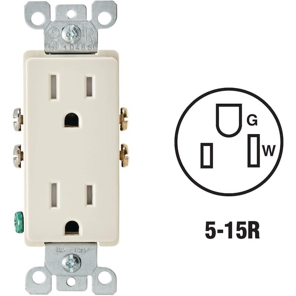 Straight Blade Receptacle, 5-15R, 15 A, 125V AC, 2 Pole, 3 Wire, Grounded