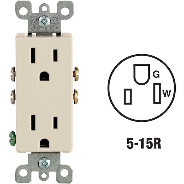 Straight Blade Receptacle, 5-15R, 15 A, 125V AC, 2 Pole, 3 Wire, Grounded