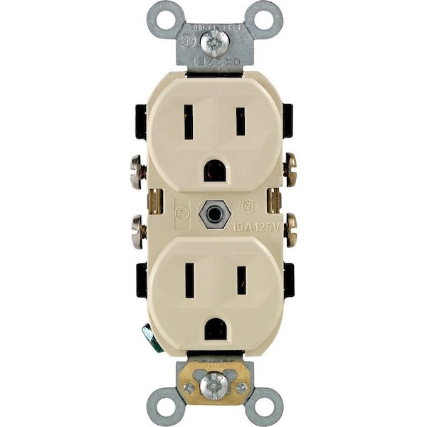Straight Blade Receptacle, 5-15R, 15 A, 125V AC, 2 Pole, 3 Wire, Self-Grounded