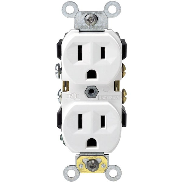 Straight Blade Receptacle, 5-15R, 15 A, 125V AC, 2 Pole, 3 Wire, Self-Grounded