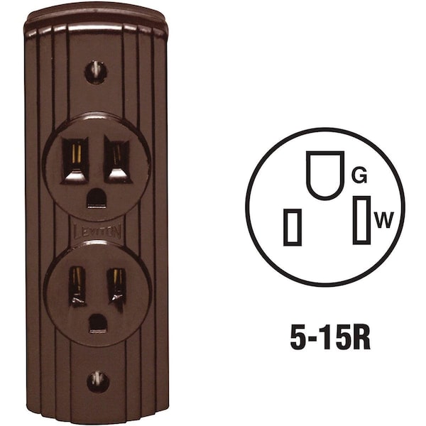 Straight Blade Receptacle, 5-15R, 15 A, 125V AC, 2 Pole, 3 Wire, Surface Mount, Grounded