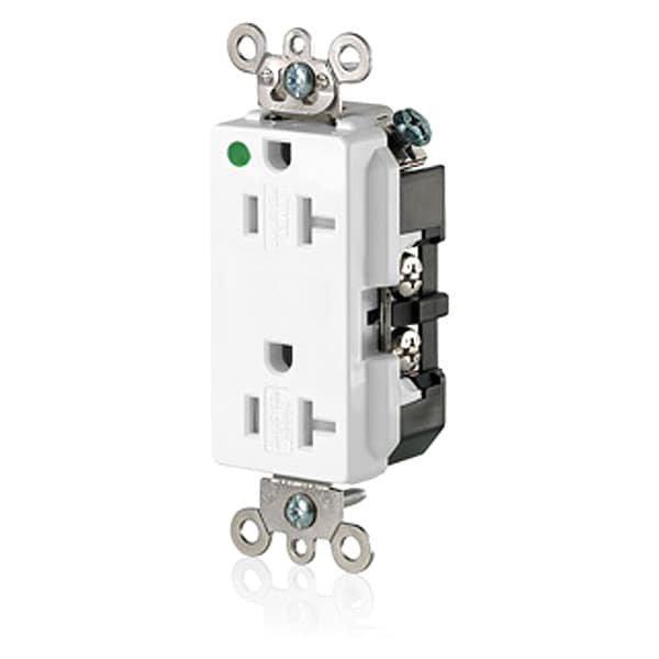 Receptacle, Connection Orientation Straight, Cover Type No Cover, Current Rating 20 A, GFCI No, Grounding Grounded, Hazardous Location Specification Not Applicable, Housing Color White, Housing Material Nylon, Mount Type Flush, NEMA Enclosure Rating Not Rated, NEMA Receptacle Configuration 5-20R, Number of Poles 2, Number of Wires 3, Phase Single, Polarized Yes, Receptacle Type Decorator Duplex, Resistance Properties Tamper Resistant
